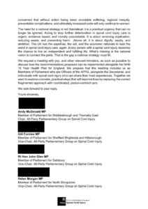 The submission is backed by more than 180 signatories, including consultants and healthcare professionals across almost every NHS Trust, 7 of the 8 Spinal Cord Injury Centres, the Royal College of Nursing, people with lived experience, partner charities and Parliamentarians from both Houses.